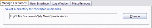 Audio Converter Export Audio File Name Management for Huelix Batch Audio ConverterSelecting a Target DirectoryFile and directory management is accessed through the General