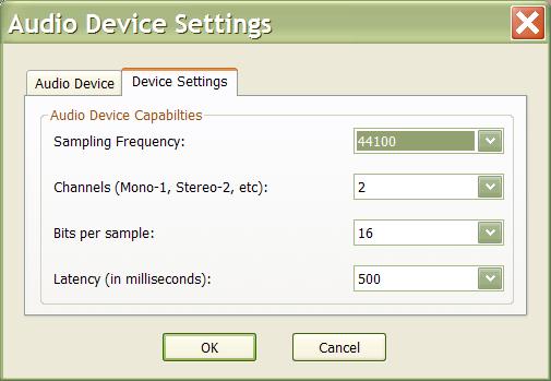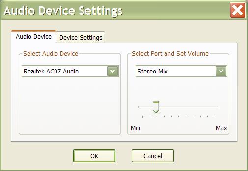 recording volume. Also note the inactive tab ("Device Settings") that allows further fine-tuning, where
